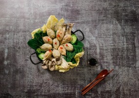 다양한 채소, 육수, 그리고 만두가 만나